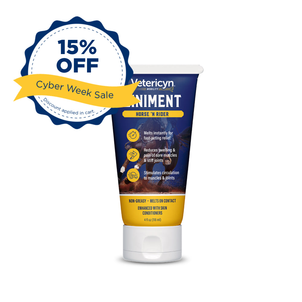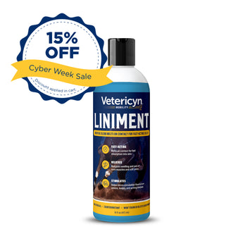 Vetericyn® Liniment was developed with a micro-encapsulated blend of menthol that melts on contact when applied.  This unique property allows the product to be applied like lotion but penetrates the skin like a non-viscous liquid.  The proprietary blend of botanicals and menthol is proven to soothe, and refresh worked muscles.  In addition, the formulation is enhanced with skin conditioners that are beneficial when using the product regularly.  It is fast-acting, stimulates, and relieves tired muscles and joints.
