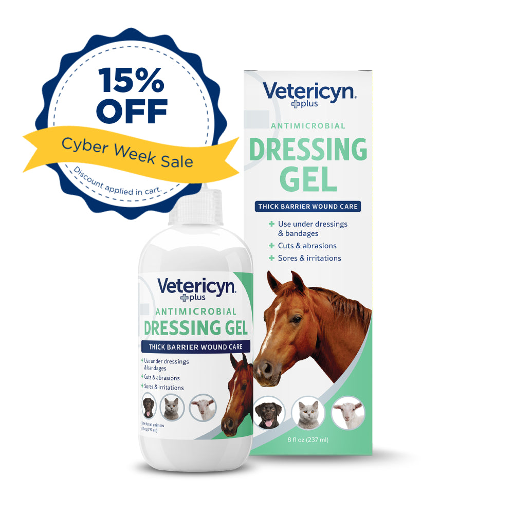 Shield wounds and support healing with Vetericyn Plus Antimicrobial Dressing Gel.