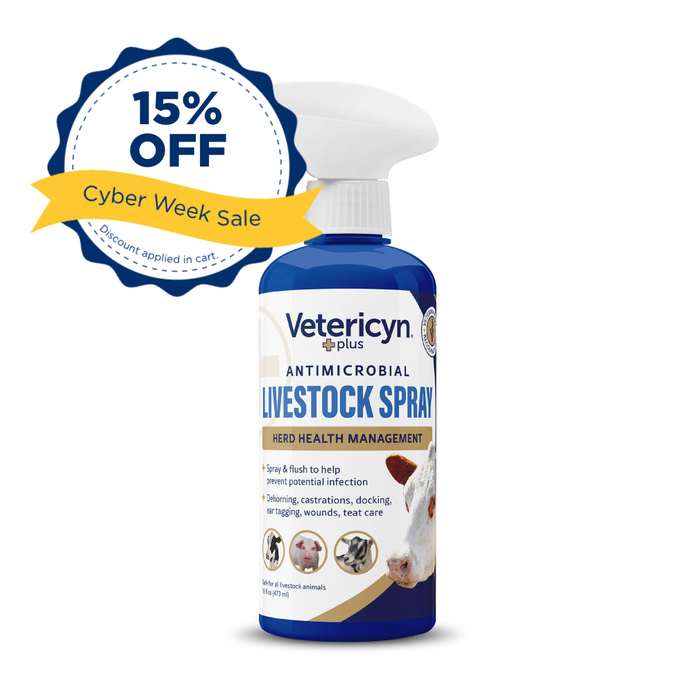 Vetericyn Plus Antimicrobial Livestock Spray is a one-step liquid solution for cleaning, irrigating, debriding, and moisturizing wounds, lacerations, abscesses, and sores. This non-rinse solution is non-toxic and easy to apply.