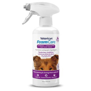 Vetericyn FoamCare Pet Shampoo is a pH balanced, hypoallergenic, spray-on, instant foaming shampoo that’s specially formulated for the density of your pet’s coat. The easy on, easy off conditioning shampoo saves you time while leaving your animal’s skin healthy, conditioned, and nourished and the coat amazingly clean.