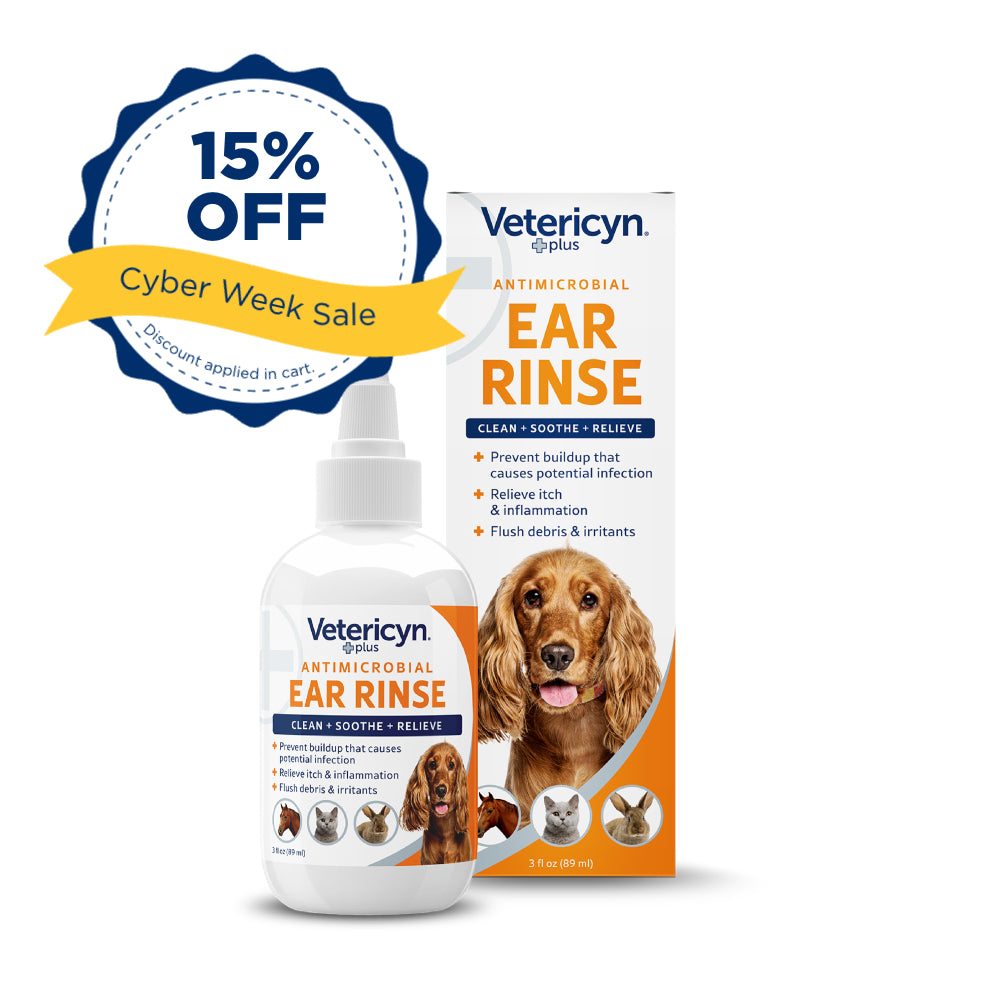 Keep your pet's ears clean with Vetericyn Plus Antimicrobial Ear Rinse, a gentle, non-toxic formula powered by a hypochlorous technology that safely flushes out debris, pollutants, and buildup without the need for antibiotics or steroids. Ideal for dogs, cats, and all animals, this easy-to-use rinse can relieve itching, irritation, and bad odors while reducing the risk of infections. It is perfect for routine maintenance after outdoor adventures or to soothe allergy-related discomfort.